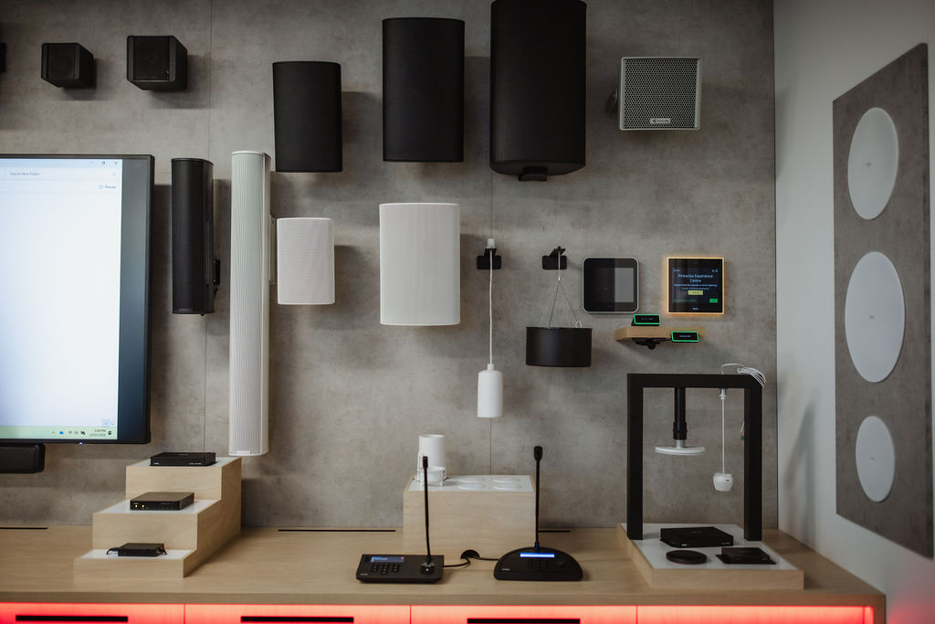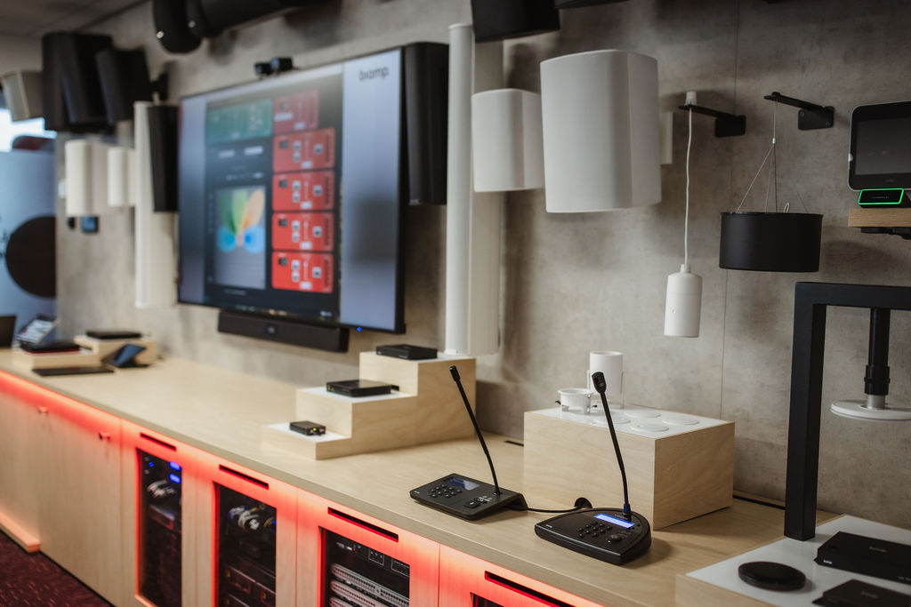 • Salas de Conferencias y Corporativos: Hemos pasado de las tarjetas AEC en sistemas Audia a la simplicidad y potencia de Tesira FORTÉ VC, Devio y, actualmente, a los versátiles procesadores Tesira FORTÉ X. La integración de microfonía de seguimiento Parlé y altavoces Desono nos permite entregar salas de juntas “llave en mano” con audio de estudio.