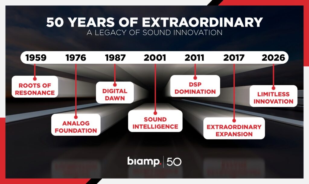 Celebrar los 50 años de Biamp es también celebrar la capacidad de Aplitec Ingeniería para adaptar estas innovaciones a las necesidades reales de nuestros clientes. Ya sea mediante protocolos AVB, Dante o la gestión de señales en infraestructuras de red convergentes, seguimos comprometidos con la excelencia que solo medio siglo de experiencia puede respaldar.